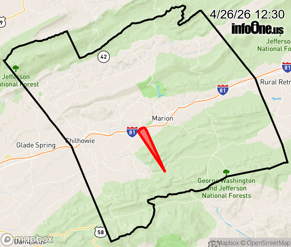 Canceled 4/26/26 1:40 PM Smyth County has 1 power outage affecting 91 customers. Appalachian Power 91 without power Marion: Customers affected: 90 (1%) Estimated repair: Sun 3:00 PM Sugar Grove: Customers affected: <5 (< 1%) Estimated repair: Sun 3:00 PM Updated: Sun 4/26/26 12:30 PM EDT ![]() Updated: Sun 4/26/26 12:30 PM EDT |
