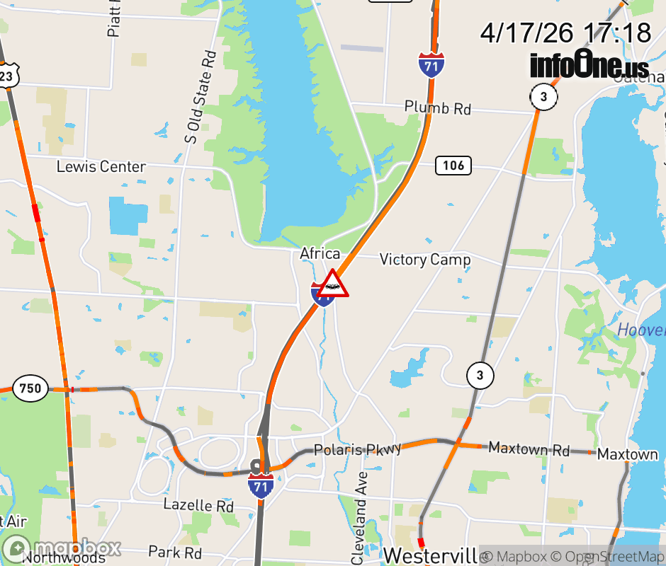 The left shoulder is blocked on I-71 North beyond Polaris Pkwy/Gemini Place, due to a crash. ![]() |