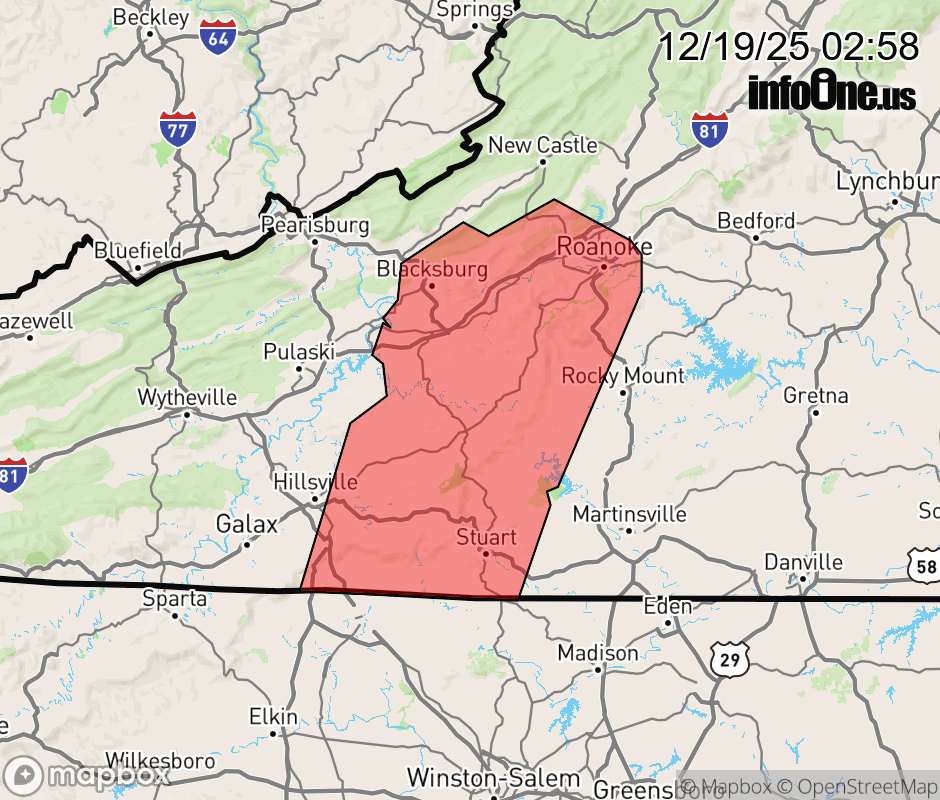 Canceled 12/19/25 3:45 AM Special Weather Statement issued December 19 at 2:57AM EST by NWS Blacksburg VA At 256 AM EST, Doppler radar was tracking heavy rain showers along a line extending from near Blacksburg to near Pine Ridge. Movement was east at 45 mph. HAZARD...Wind gusts up to 40 mph. SOURCE...Radar indicated. IMPACT...Gusty winds could knock down tree limbs and blow around unsecured objects. Locations impacted include... Roanoke... Blacksburg... Salem... Christiansburg... Radford... Vinton... and Stuart. ![]() |