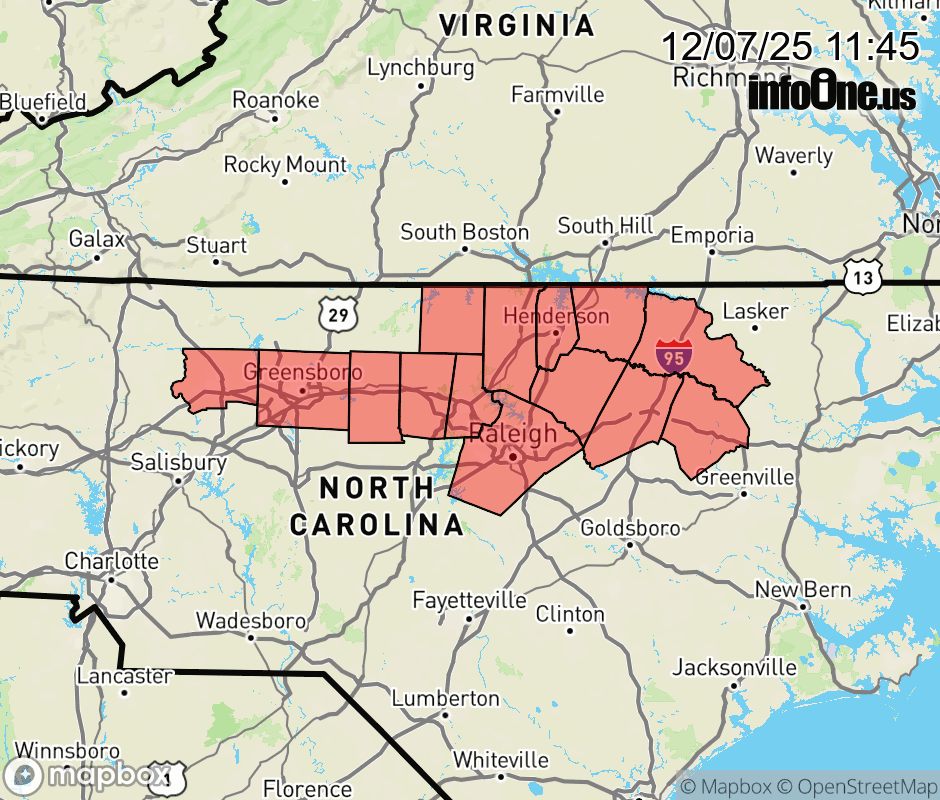 Canceled 12/7/25 12:00 PM Freezing Fog Advisory issued December 7 at 11:44AM EST until December 7 at 12:00PM EST by NWS Raleigh NC Temperature have risen above freezing and the threat for widespread dense fog has ended. ![]() |