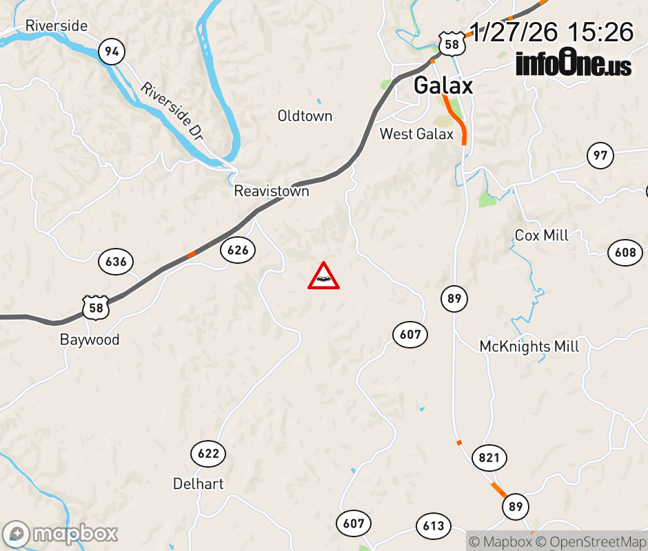 On Rt. 621 East in the County of Grayson, in the vicinity of White Pine Rd; Rt. 617N/S (Grayson County), motorists can expect delays due to a vehicle crash. Lane closures exist. Updated: Tue 1/27/26 3:26 PM EST ![]() Updated: Tue 1/27/26 3:26 PM EST |