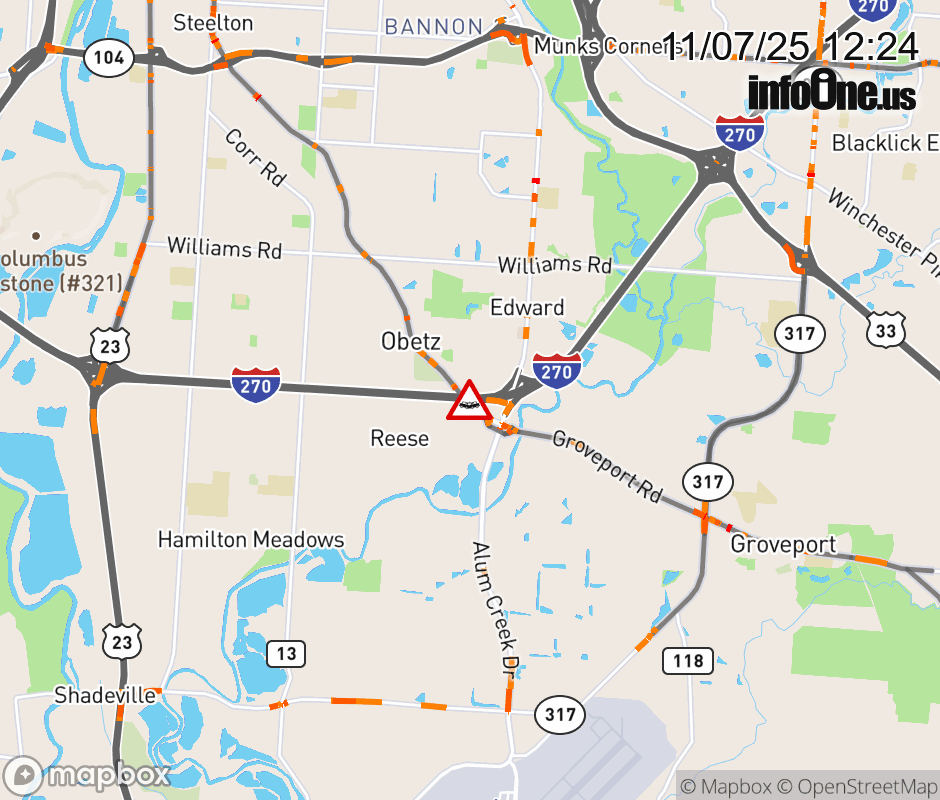 The left lane is blocked on I-270 East at Alum Creek Dr, due to a crash. ![]() |