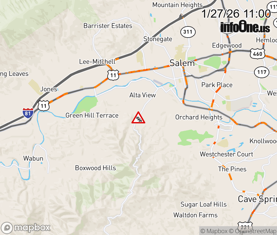 On Rt. 694 in the County of Roanoke, in the vicinity of Mowles Rd, motorists can expect potential delays due to weather. All north lanes are closed. All south lanes are closed. Updated: Tue 1/27/26 11:00 AM EST ![]() Updated: Tue 1/27/26 11:00 AM EST |