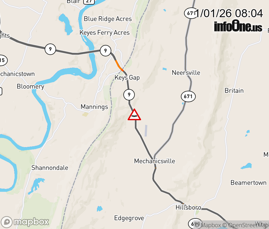 On VA-9 East in the County of Loudoun, in the vicinity of Sagle Rd; Rt. 687E/W (Loudoun County), motorists can expect delays due to a vehicle crash. Updated: Thu 1/1/26 8:04 AM EST ![]() Updated: Thu 1/1/26 8:04 AM EST |