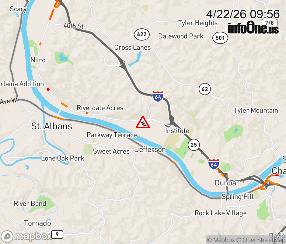 Road Closure on WV-25 from New Goff Mountain Road to Kilowatt Road. The westbound road is closed. The eastbound road is closed. ![]() |