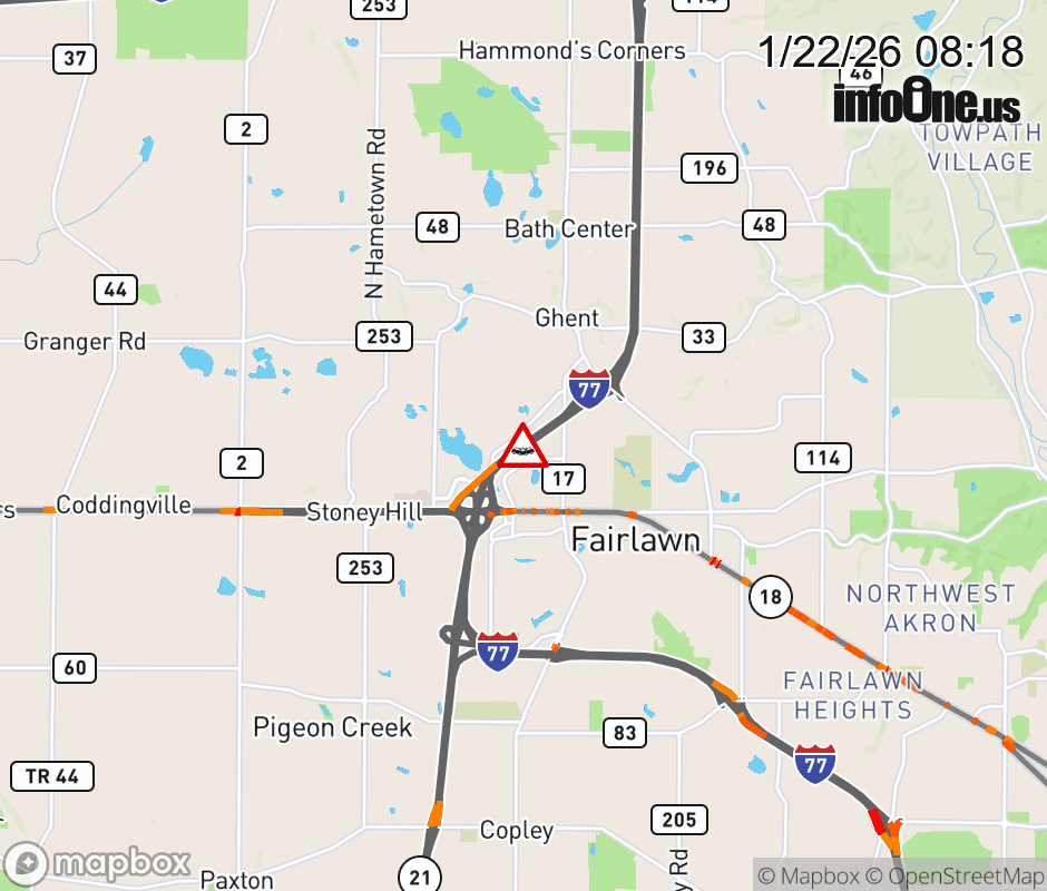 The left shoulder is blocked on I-77 South beyond Ghent Rd, due to a crash. ![]() |