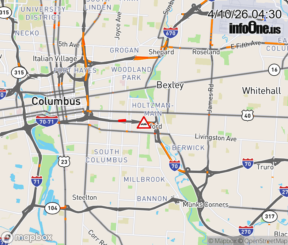 The right lane is blocked on I-70 East beyond Miller Ave/Kelton Ave, due to a disabled vehicle. Updated: Fri 4/10/26 4:30 AM EDT ![]() Updated: Fri 4/10/26 4:30 AM EDT |