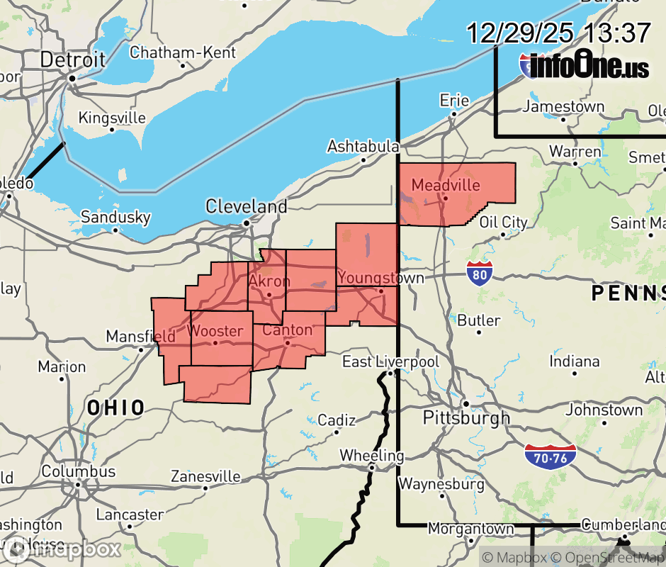Canceled 12/29/25 7:04 PM Wind Advisory issued December 29 at 1:36PM EST until December 30 at 1:00AM EST by NWS Cleveland OH * WHAT... West winds 20 to 30 mph with gusts up to 55 mph expected. * WHERE... In Ohio, Ashland, Holmes, Mahoning, Medina, Portage, Stark, Summit, Trumbull, and Wayne Counties. In Pennsylvania, Crawford County. * WHEN... Until 1 AM EST Tuesday. * IMPACTS... Gusty winds will blow around unsecured objects. Tree limbs could be blown down and a few power outages may result. ![]() |