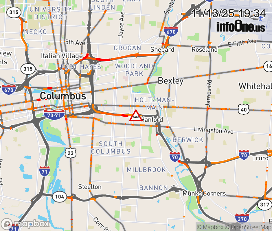 Canceled 11/13/25 7:46 PM Location: I-70 East E, OH Accident.