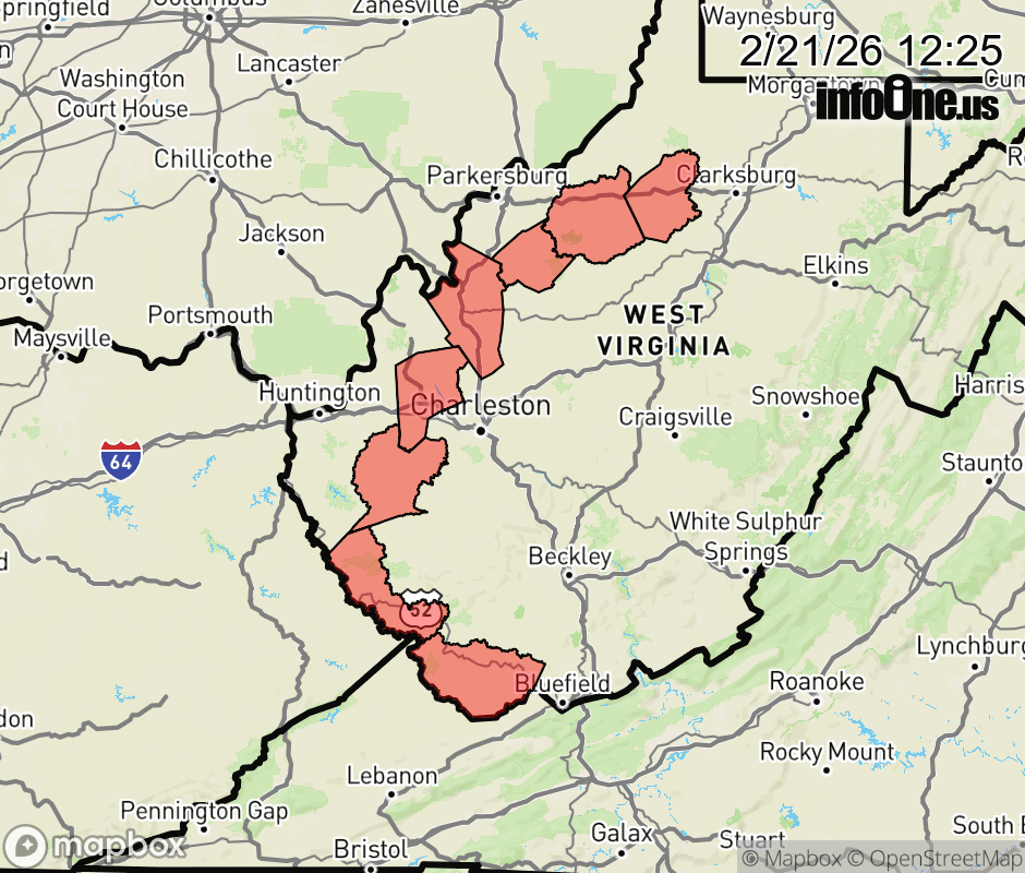 Canceled 2/21/26 3:26 PM Winter Storm Warning issued February 21 at 12:24PM EST until February 24 at 1:00AM EST by NWS Charleston WV * WHAT... Heavy snow expected. Total snow accumulations between 2 and 4 inches. * WHERE... Portions of central, northern, and southern West Virginia. * WHEN... From 1 AM Sunday to 1 AM EST Tuesday. * IMPACTS... Roads, and especially bridges and overpasses, will likely become slick and hazardous. Plan on slippery road conditions. The hazardous conditions could impact the Monday morning and evening commutes. ![]() |