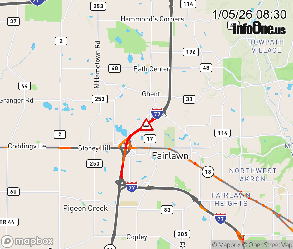 The right lane is blocked on I-77 North beyond SR-18 West, due to a crash. ![]() |