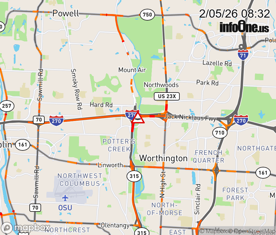 Expect lane closures on Ramp SR-315 North to I-270/US-23, due to a crash. ![]() |