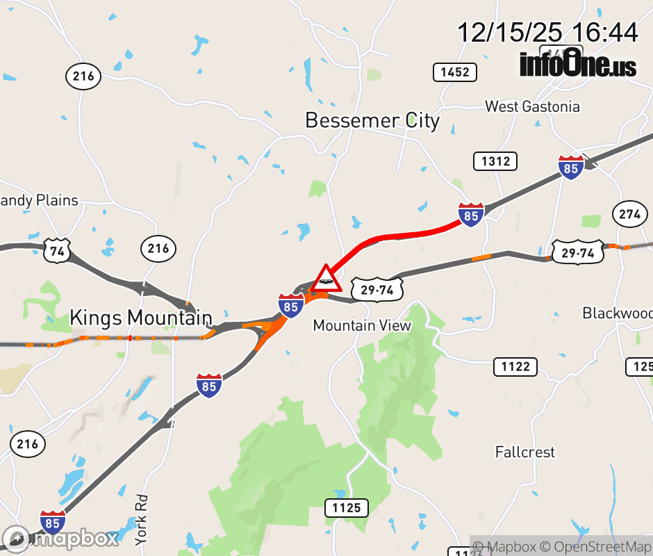 Canceled 12/15/25 5:10 PM Location: I-85N at MM 10, NC Vehicle Crash.