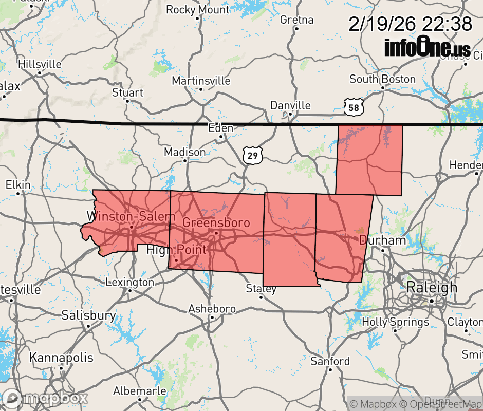 Canceled 2/20/26 12:45 AM Special Weather Statement issued February 19 at 10:37PM EST by NWS Raleigh NC Areas of dense fog has developed across portions portions of the northern Piedmont tonight with visibilities lowering to a quarter mile or less at times. Visibilities are expected to improve between 9 and 10 AM this morning. If you encounter dense fog while driving, turn on your low beam headlights, slow down, and keep your distance from other vehicles. ![]() |