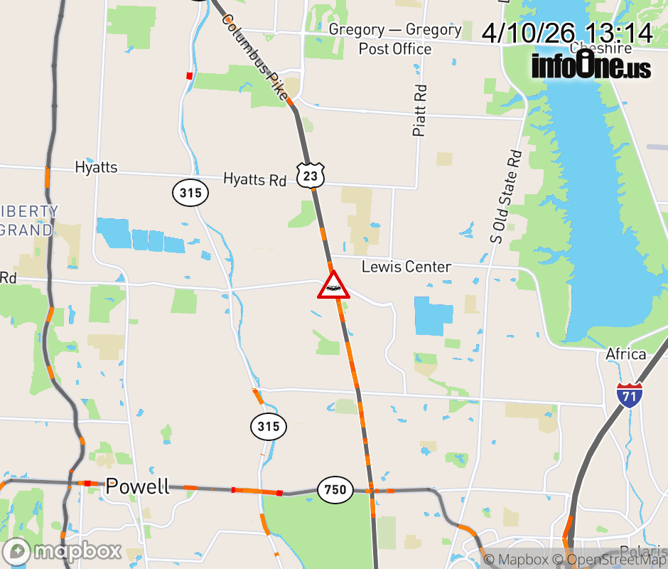 The right lane is blocked on US-23 South at Home Rd, due to a crash. Updated: Fri 4/10/26 1:14 PM EDT ![]() Updated: Fri 4/10/26 1:14 PM EDT |