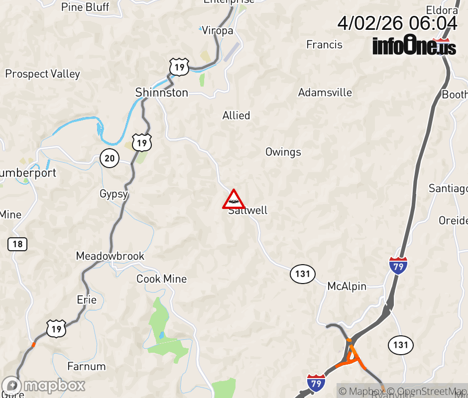 Vehicle Crash on WV-131 (3300 Saltwell Rd, Shinnston). ![]() |