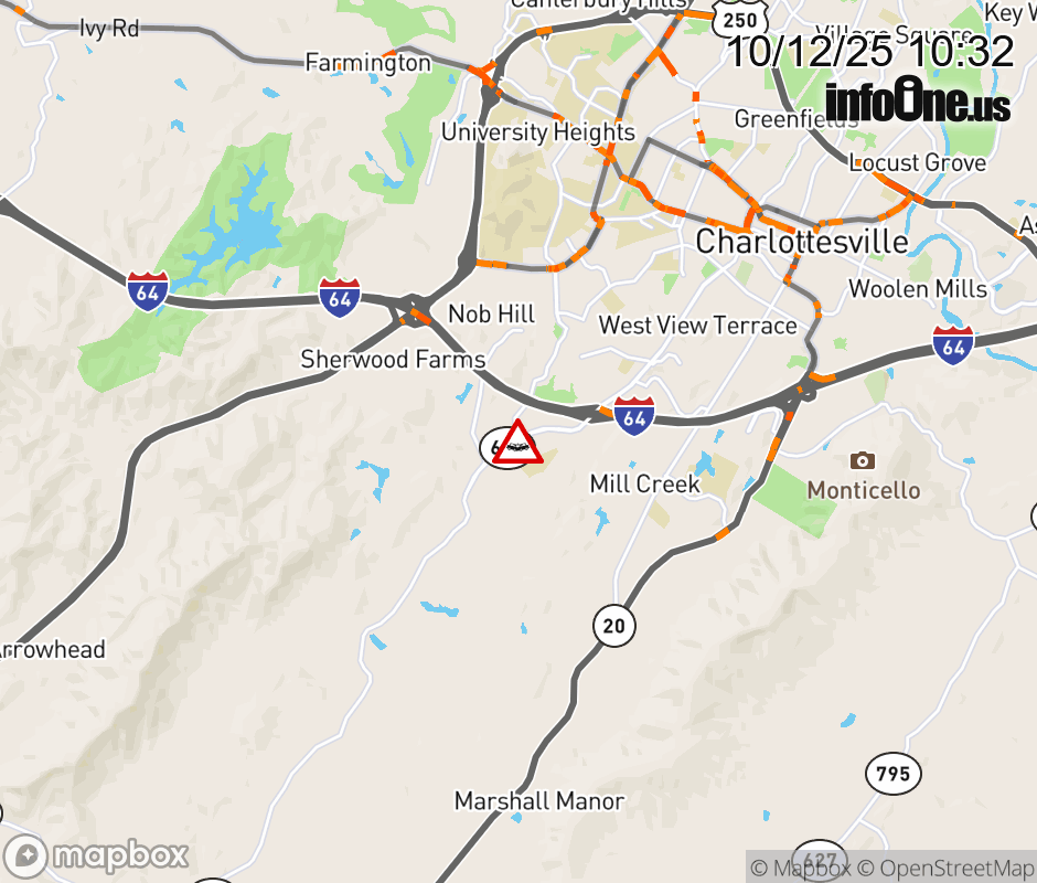 On Rt. 631 in the County of Albemarle, in the vicinity of Stagecoach Rd; Rt. 877E/W (Albemarle County), motorists can expect delays due to a vehicle crash. All north lanes are closed. All south lanes are closed. ![]() |