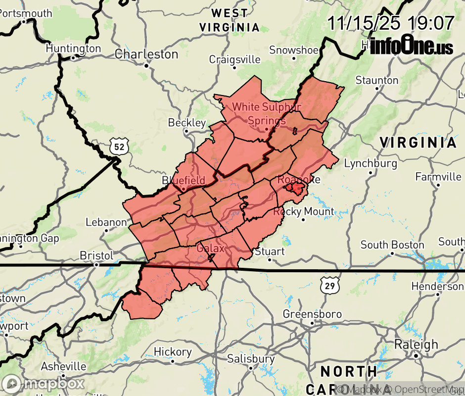 Canceled 11/16/25 3:32 AM Wind Advisory issued November 15 at 7:04PM EST until November 16 at 12:00PM EST by NWS Blacksburg VA * WHAT... West winds 15 to 25 mph with gusts up to 50 mph expected. * WHERE... Portions of northwest North Carolina, southwest Virginia, and southeast West Virginia. * WHEN... From midnight tonight to noon EST Sunday. * IMPACTS... Gusty winds will blow around unsecured objects. Tree limbs could be blown down and a few power outages may result. ![]() |