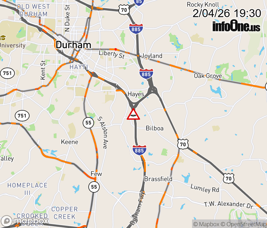 The right shoulder is closed after Exit 1 (I-885). Updated: Wed 2/4/26 7:30 PM EST ![]() Updated: Wed 2/4/26 7:30 PM EST |