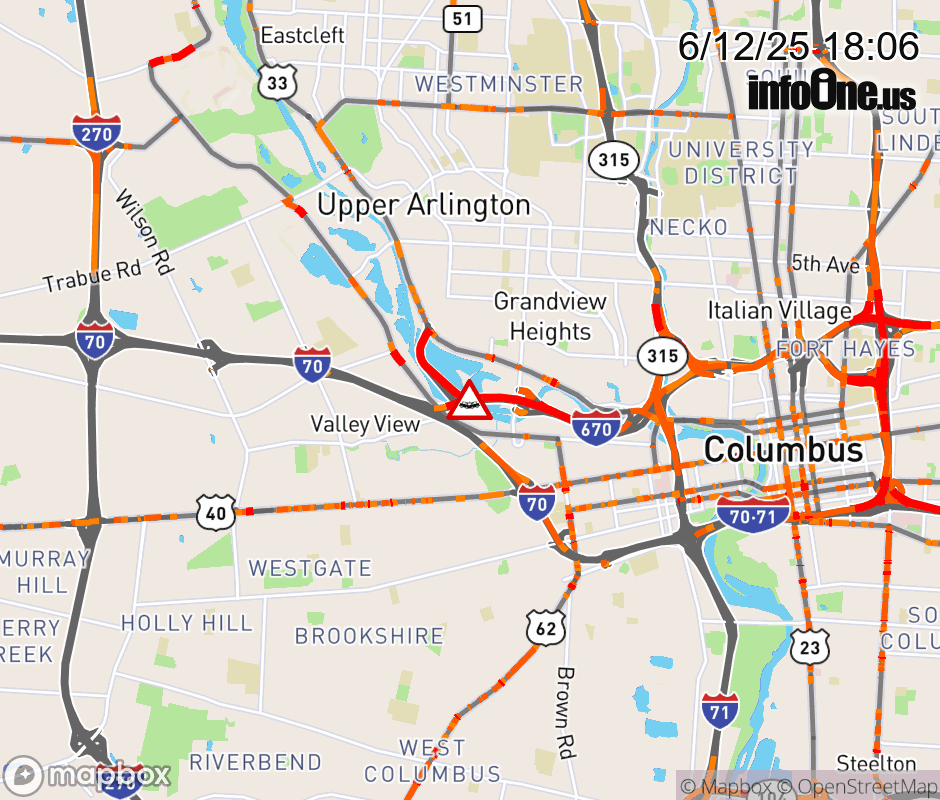 The right lane is blocked on I-670 West at US-33, due to a crash. ![]() |