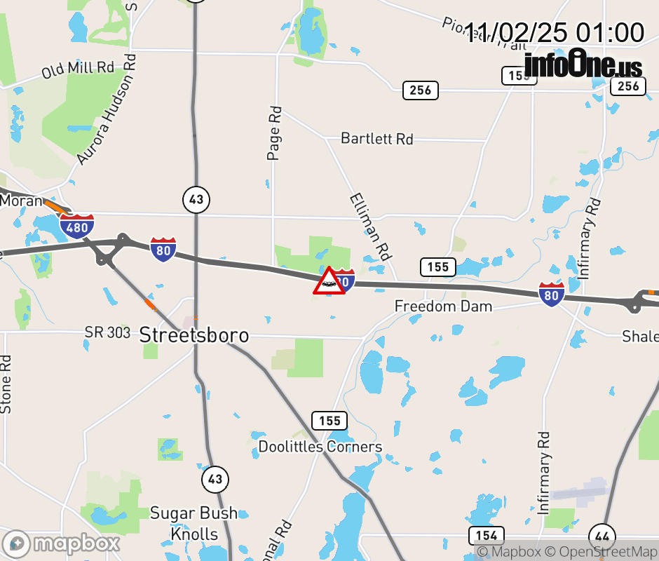 Expect lane closures on I-80 West (Ohio Turnpike) beyond SR-44, due to a crash. Updated: Sun 11/2/25 1:00 AM EDT ![]() |