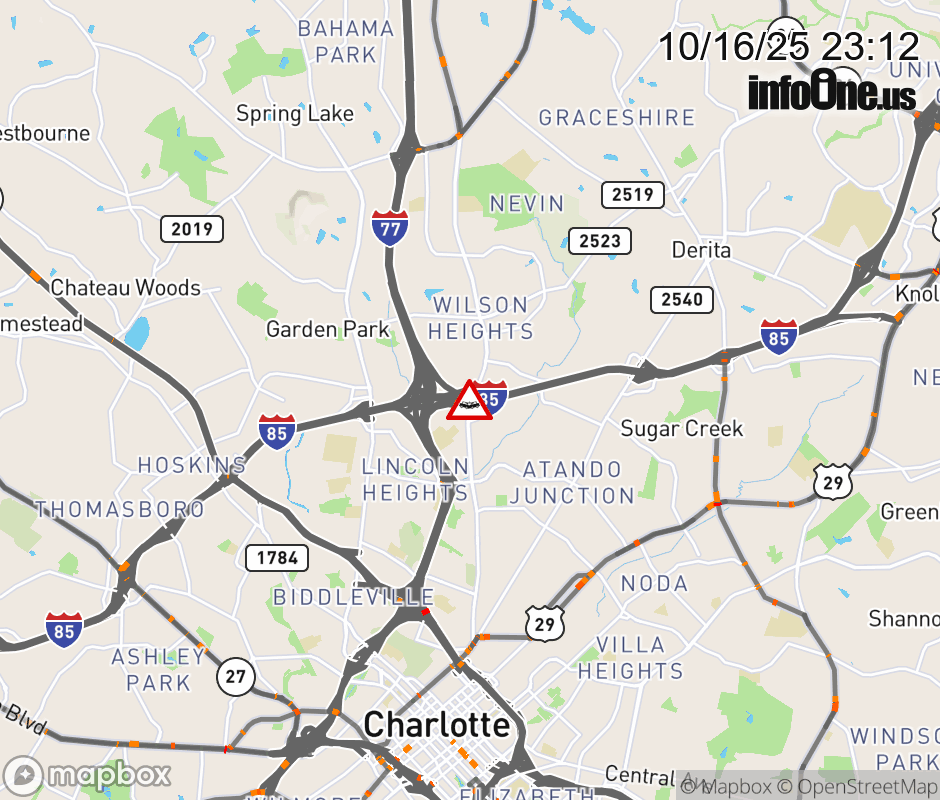 The three right lanes are closed at Exit 38 (Statesville Ave). Updated: Thu 10/16/25 11:12 PM EDT ![]() Updated: Thu 10/16/25 11:12 PM EDT |