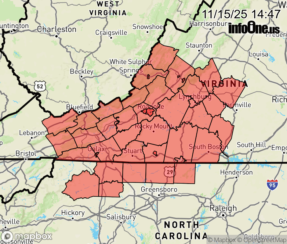 Canceled 11/15/25 7:14 PM Fire Weather Watch issued November 15 at 2:46PM EST until November 16 at 6:00PM EST by NWS Blacksburg VA ...FIRE WEATHER WATCH IN EFFECT FOR PARTS OF SOUTHWEST VIRGINIA, SOUTH CENTRAL VIRGINIA, AND NW NORTH CAROLINA... .Gusty winds combined with low relative humidity and dry fuels will result in a high chance for adverse and dangerous fire behavior Sunday. The National Weather Service in Blacksburg has issued a Fire Weather Watch for SW and South Central Virginia and Portions of NW North Carolina, which is in effect from Sunday morning through Sunday afternoon. * AFFECTED AREA... In North Carolina, Fire Weather Zone 003 Surry, Fire Weather Zone 004 Stokes, Fire Weather Zone 005 Rockingham, Fire Weather Zone 006 Caswell, Fire Weather Zone 019 Wilkes and Fire Weather Zone 020 Yadkin. In Virginia, Fire Weather Zone 007 Tazewell, Fire Weather Zone 009 Smyth, Fire Weather Zone 010 Bland, Fire Weather Zone 011 Giles, Fire Weather Zone 012 Wythe, Fire Weather Zone 013 Pulaski, Fire Weather Zone 014 Montgomery, Fire Weather Zone 015 Grayson, Fire Weather Zone 016 Carroll, Fire Weather Zone 017 Floyd, Fire Weather Zone 018 Craig, Fire Weather Zone 019 Alleghany VA, Fire Weather Zone 020 Bath, Fire Weather Zone 022 Roanoke, Fire Weather Zone 023 Botetourt, Fire Weather Zone 024 Rockbridge, Fire Weather Zone 032 Patrick, Fire Weather Zone 033 Franklin, Fire Weather Zone 034 Bedford, Fire Weather Zone 035 Amherst, Fire Weather Zone 043 Henry, Fire Weather Zone 044 Pittsylvania, Fire Weather Zone 045 Campbell, Fire Weather Zone 046 Appomattox, Fire Weather Zone 047 Buckingham, Fire Weather Zone 058 Halifax and Fire Weather Zone 059 Charlotte. * WINDS... Northwest 10 to 20 mph with gusts up to 40 mph. * RELATIVE HUMIDITY... As low as 22 percent. * TEMPERATURES... Up to 66. * LIGHTNING... None. * IMPACTS... Gusty winds, dry fuels, and Low RH values will lead to prime conditions for wildfires to spread across portions of the area on Sunday. ![]() |