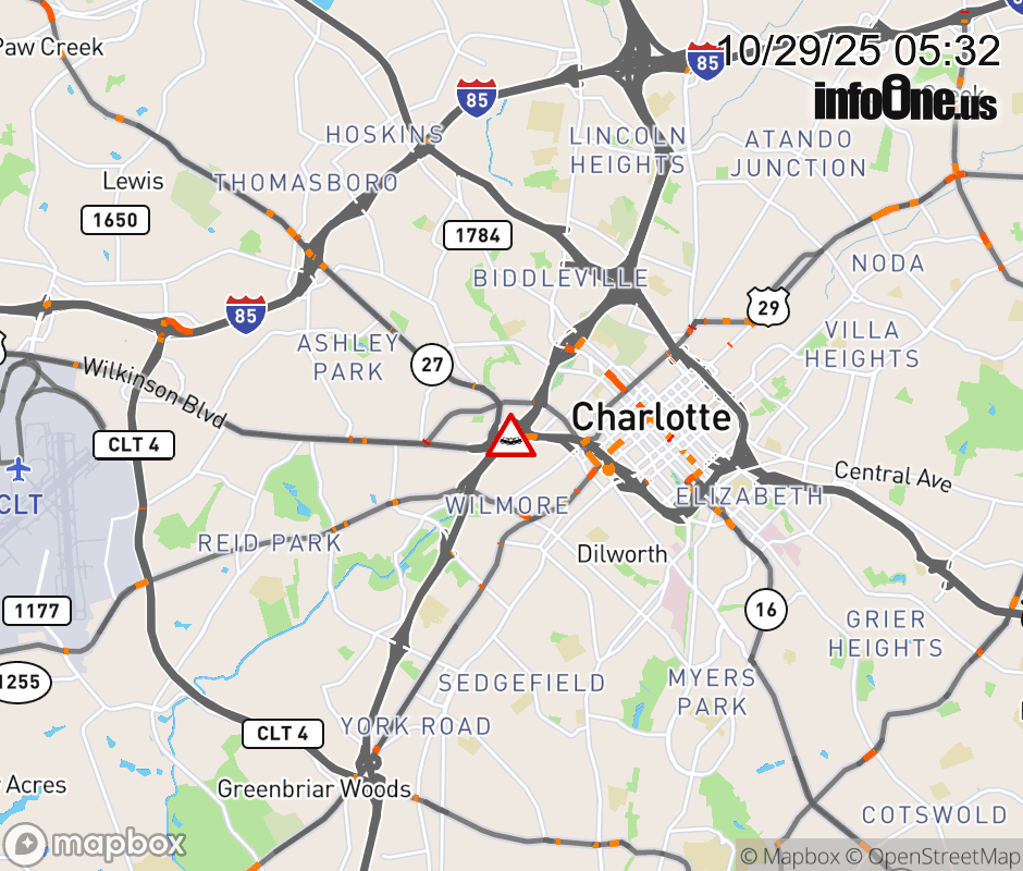 The two right lanes are closed at Exit 9 (I-277). ![]() |