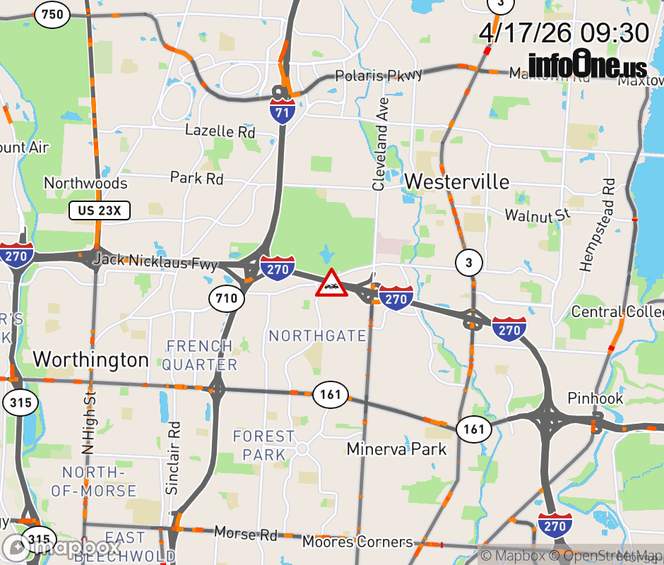 The left shoulder is blocked on I-270 West beyond SR-710/Cleveland Ave, due to a disabled vehicle. ![]() |
