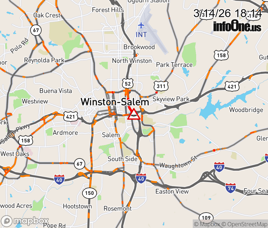 The right shoulder is closed at Exit 109 (US 421). Updated: Sat 3/14/26 6:14 PM EDT ![]() Updated: Sat 3/14/26 6:14 PM EDT |
