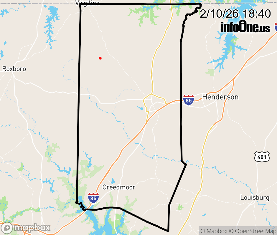 Canceled 2/10/26 8:10 PM Granville County has 2 power outages affecting 2 customers. Duke Energy 2 without power Estimated repair: Tue 9:00 PM Updated: Tue 2/10/26 6:40 PM EST ![]() Updated: Tue 2/10/26 6:40 PM EST |