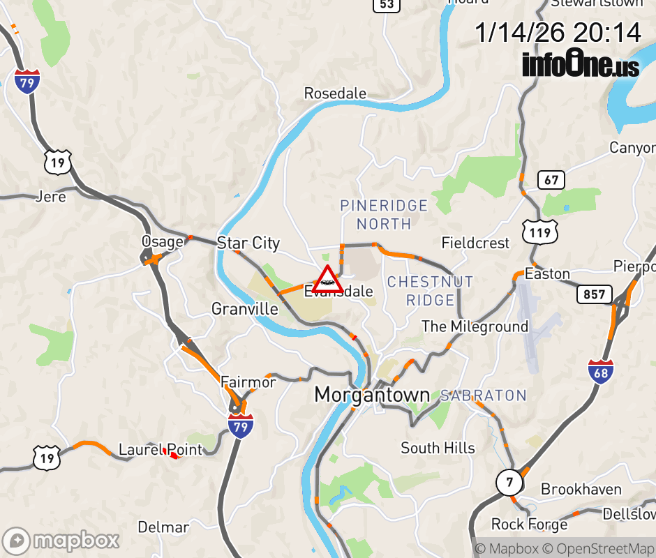 Vehicle Crash on WV-705 (Patteson Drive & University Ave). ![]() |