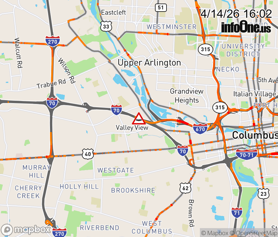The left lane is blocked on I-70 West beyond US-40/ W Broad St, due to a crash. ![]() |