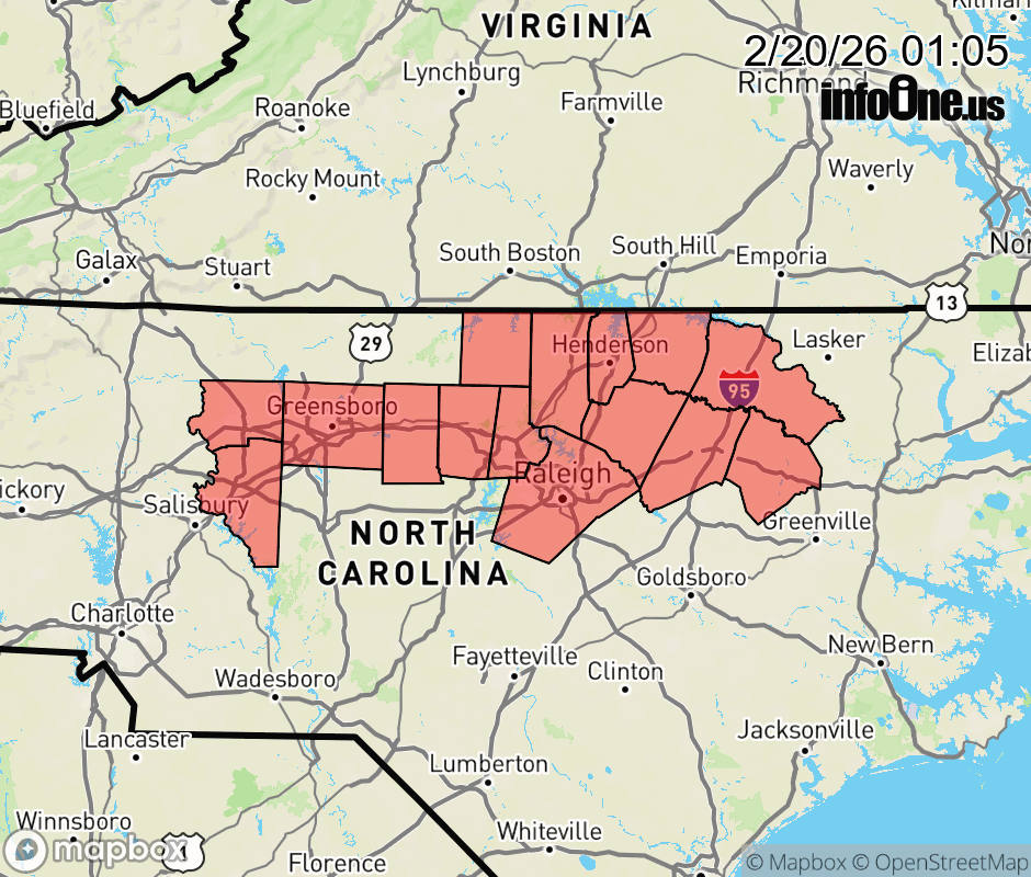Canceled 2/20/26 8:00 AM Special Weather Statement issued February 20 at 1:04AM EST by NWS Raleigh NC Areas of dense fog has developed across portions of the northern Piedmont and Coastal Plain this morning with visibilities lowering to a half mile or less at times. Visibilities are expected to improve between 8 and 9 AM this morning. If you encounter dense fog while driving, turn on your low beam headlights, slow down, and keep your distance from other vehicles. ![]() |