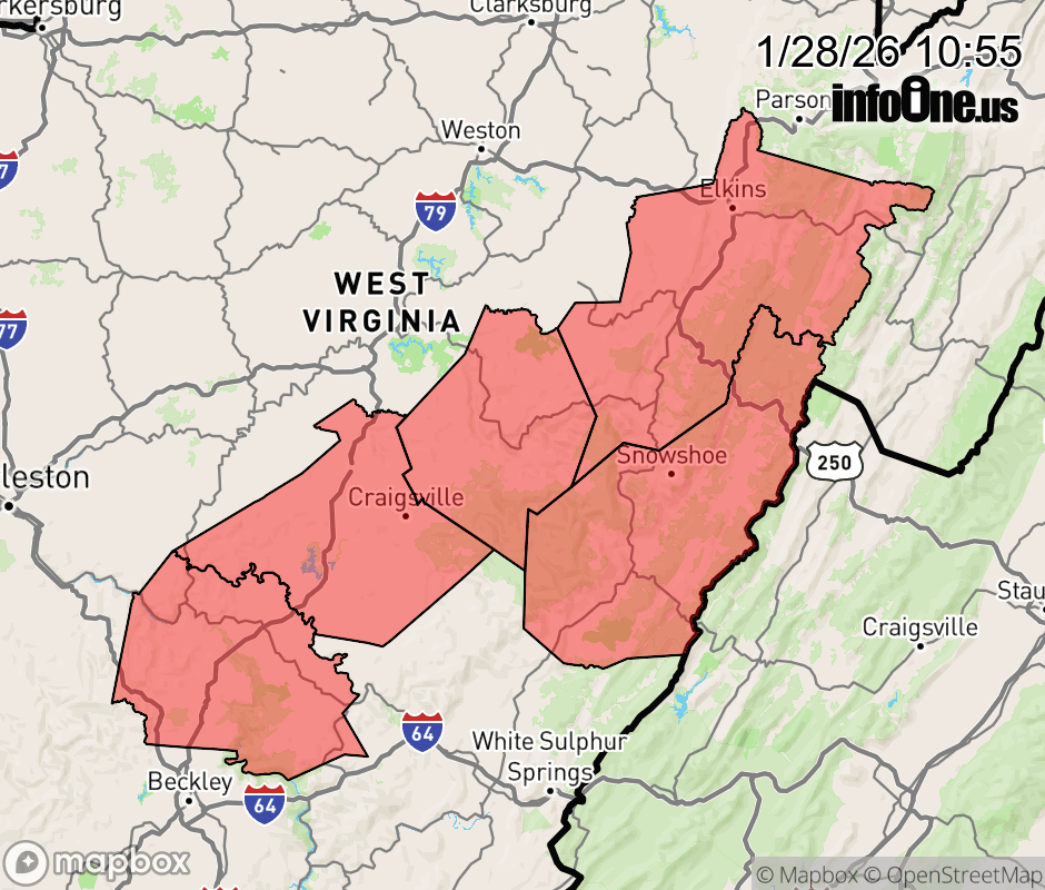 Canceled 1/28/26 12:48 PM Cold Weather Advisory issued January 28 at 10:54AM EST until January 29 at 11:00AM EST by NWS Charleston WV * WHAT... Very cold wind chills as low as 15 below expected. * WHERE... Northwest Randolph, Northwest Webster, Southeast Pocahontas, Southeast Webster, Southeast Fayette, and Southeast Nicholas Counties. * WHEN... From 7 PM this evening to 11 AM EST Thursday. * IMPACTS... The cold wind chills as low as 15 below zero could result in hypothermia if precautions are not taken. ![]() |