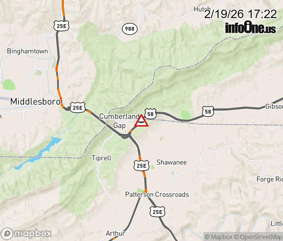 On US-58 East in the County of Scott, in the vicinity of Scenic Cir; Rt. 884E/W (Scott County), motorists can expect delays due to a multi-vehicle crash. Lane closures exist. ![]() |