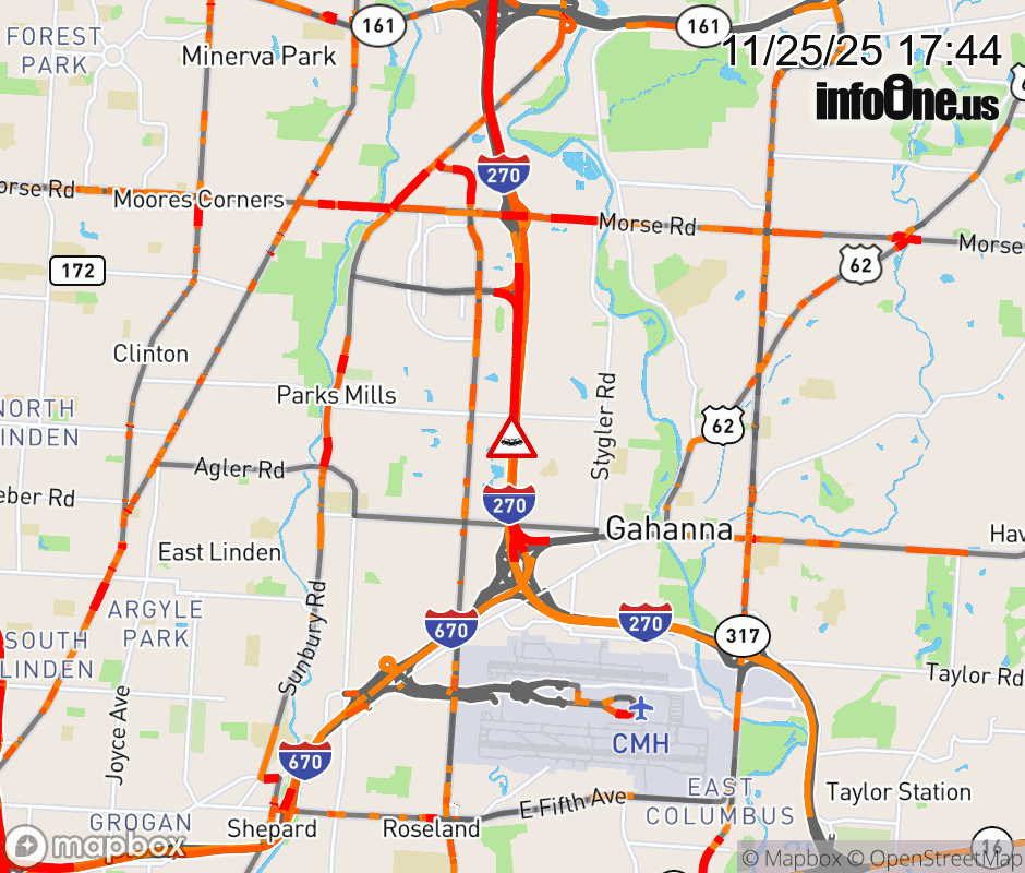 The right shoulder is blocked on I-270 South beyond Easton Way, due to a crash. Updated: Tue 11/25/25 5:44 PM EST ![]() Updated: Tue 11/25/25 5:44 PM EST |