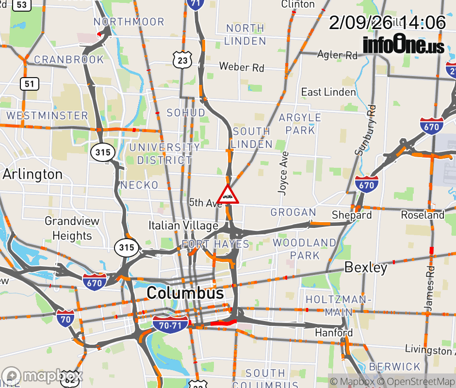 The left lane is blocked on I-71 North at 11th Ave, due to a disabled vehicle. ![]() |