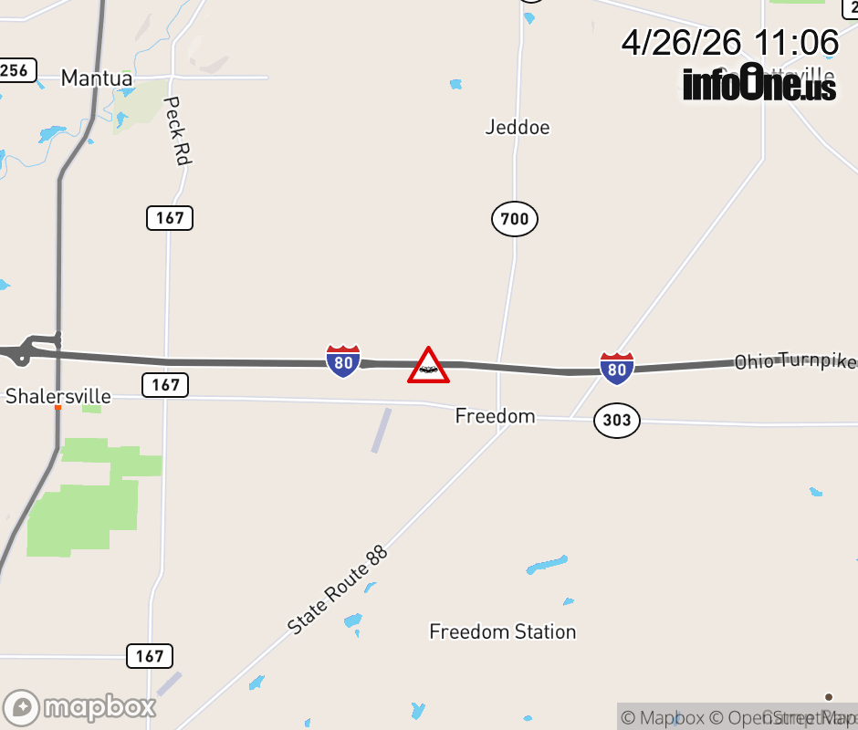 Expect lane closures on I-80 East (Ohio Turnpike) beyond SR-44, due to a crash. ![]() |