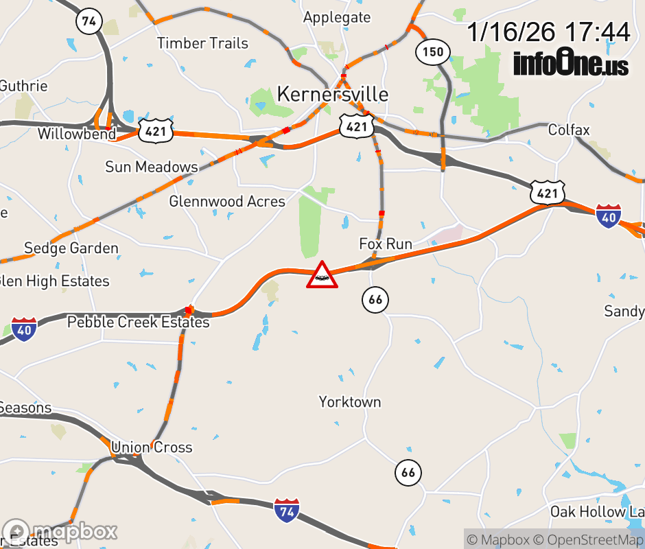 The left lane is closed before Exit 203 (NC-66). ![]() |
