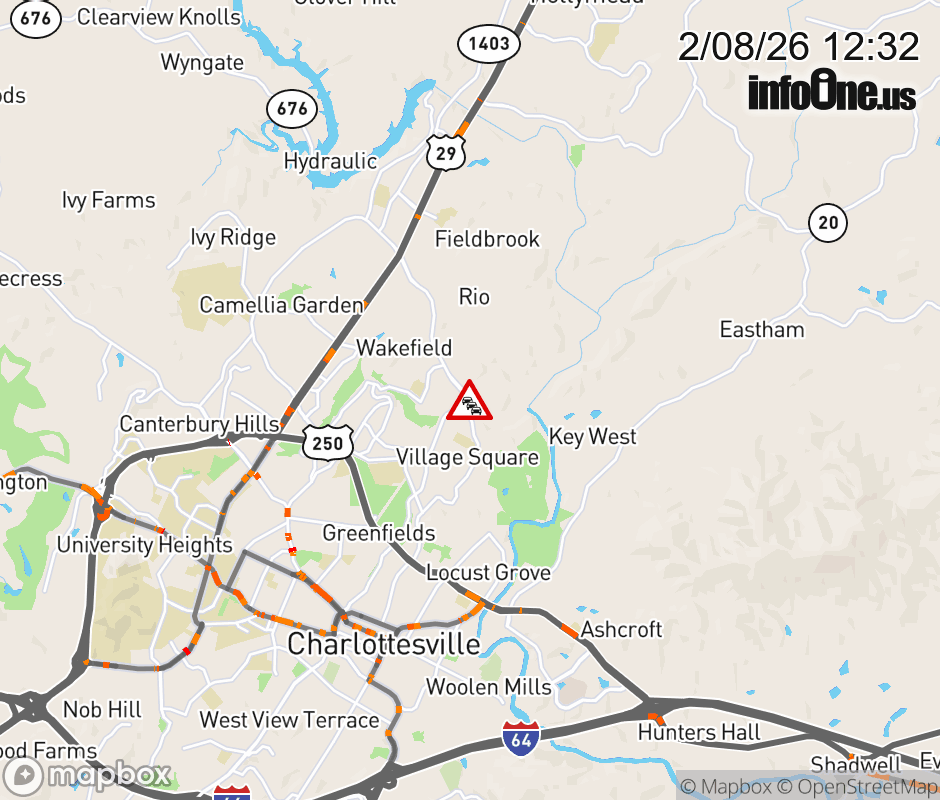On Rt. 1177 in the County of Albemarle, in the vicinity of Rio Rd E; Rt. 631N/S (Albemarle County), motorists can expect delays due to an incident. All east lanes are closed. All west lanes are closed. Updated: Sun 2/8/26 12:32 PM EST ![]() Updated: Sun 2/8/26 12:32 PM EST |