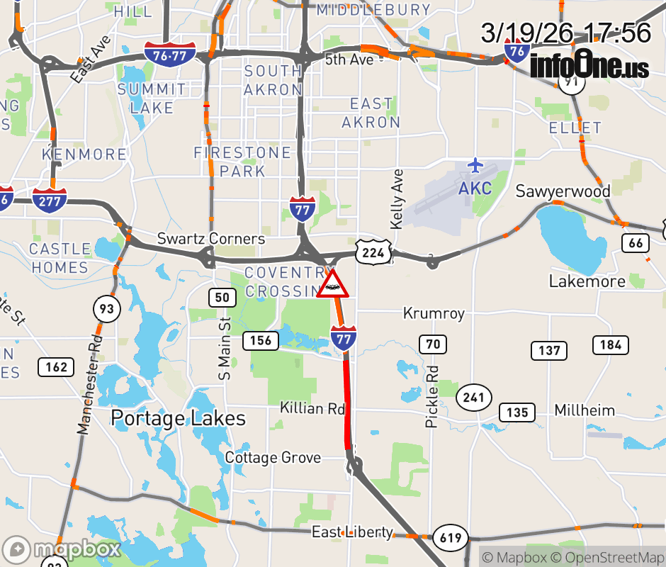 The left shoulder is blocked on I-77 South beyond US-224 East, due to a crash. ![]() |