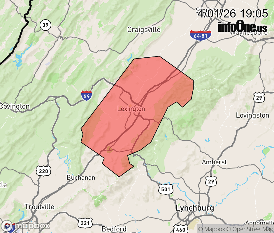 Canceled 4/1/26 7:30 PM Special Weather Statement issued April 1 at 7:04PM EDT by NWS Blacksburg VA At 704 PM EDT, Doppler radar was tracking strong thunderstorms along a line extending from Rockbridge Baths to Lithia. Movement was east at 30 mph. HAZARD...Wind gusts up to 40 mph. SOURCE...Radar indicated. IMPACT...Gusty winds could knock down tree limbs and blow around unsecured objects. Locations impacted include... Lexington... Buena Vista... Glasgow... Collierstown... Rockbridge Baths... Cornwall... and Fairfield. ![]() |