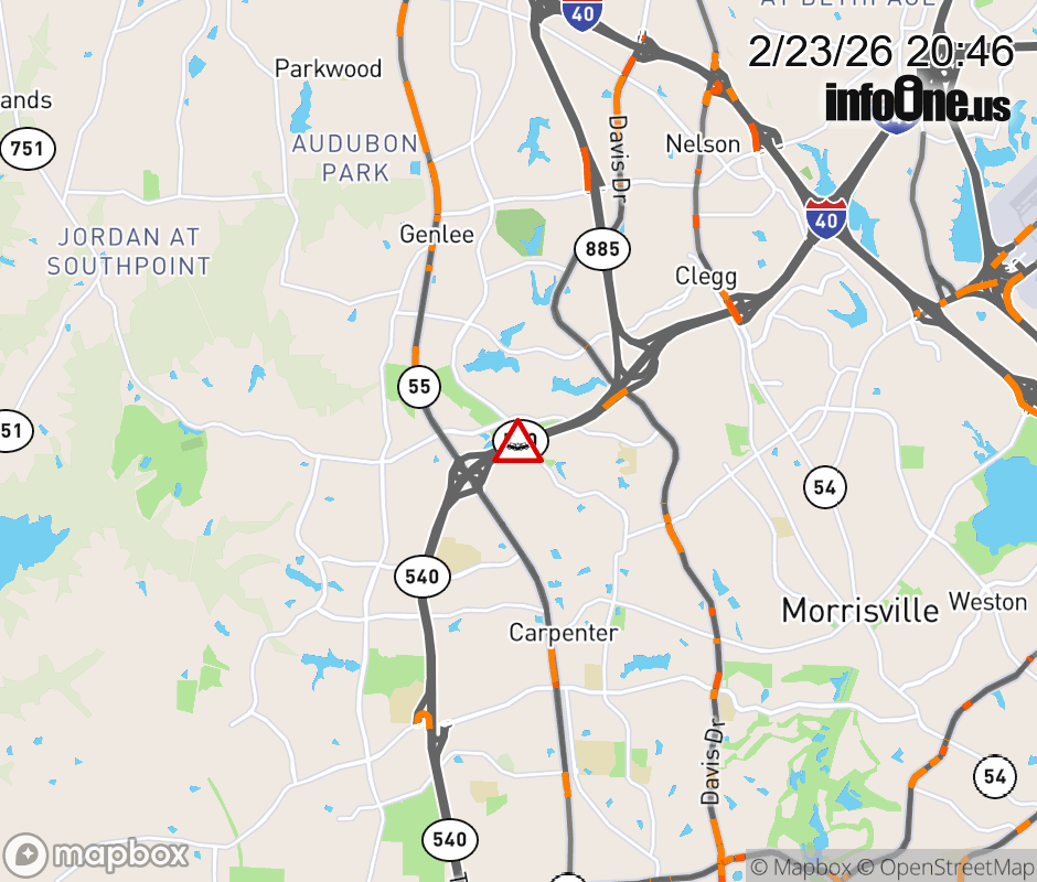 The right shoulder is closed near Exit 66 (NC 55). ![]() |