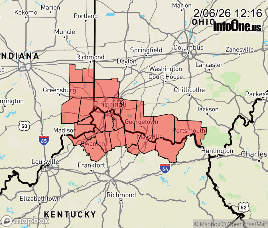 Cold Weather Advisory issued February 6 at 12:15PM EST until February 7 at 12:00PM EST by NWS Wilmington OH * WHAT... Very cold wind chills as low as 9 below zero expected. * WHERE... Portions of east central and southeast Indiana, northeast and northern Kentucky, and south central and southwest Ohio. * WHEN... From 1 AM to noon EST Saturday. * IMPACTS... The cold wind chills as low as 10 below zero could result in hypothermia if precautions are not taken. ![]() |
