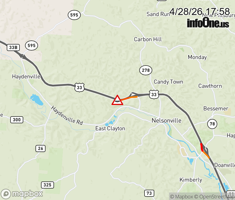 Expect lane closures on US-33 East beyond SR-595, due to a crash. ![]() |