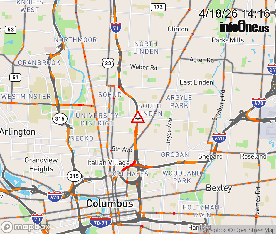 Expect lane closures on Ramp from E 17th Ave to I-71 N, due to a crash. ![]() |