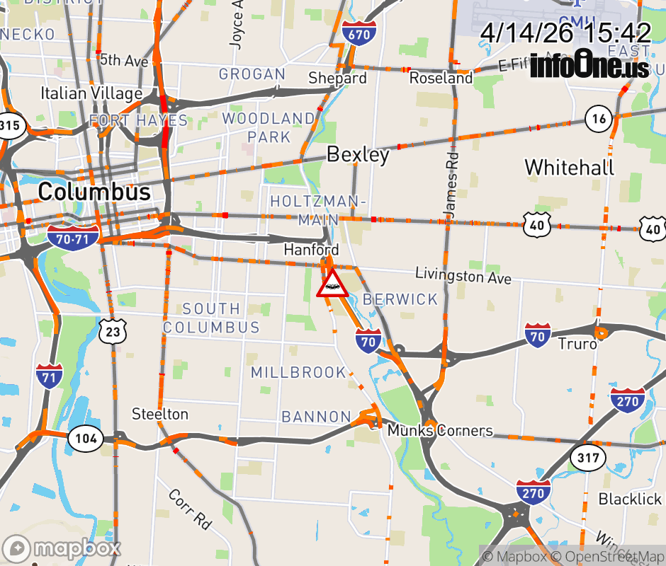 The right lane is blocked on I-70 East at Alum Creek Dr/Livingston Ave, due to a crash. ![]() |