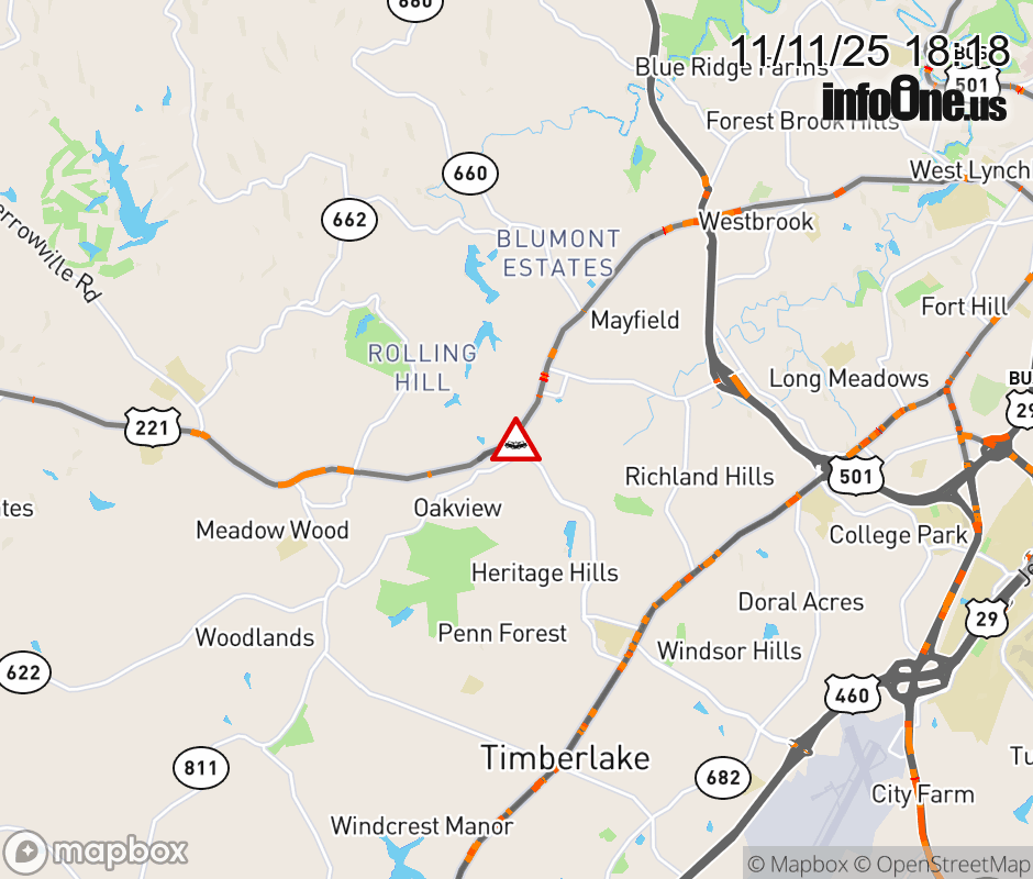 On Rt. 1415 East in the County of Bedford, in the vicinity of Annjo Ct; Rt. 1416E/W (Bedford County), motorists can expect delays due to a multi-vehicle crash. Lane closures exist. ![]() |