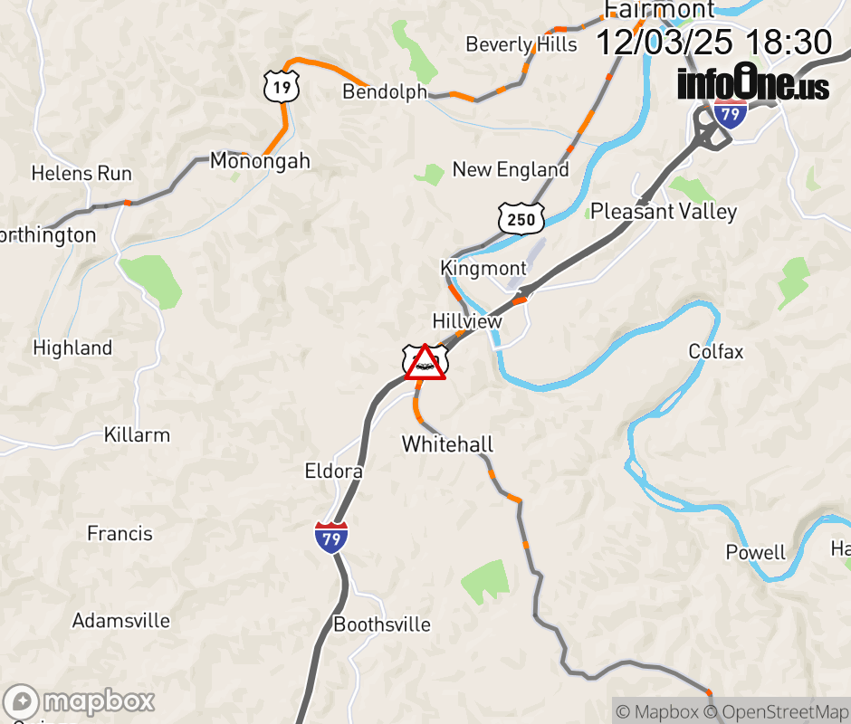 Vehicle Crash on US-250(White Hall Blvd). Updated: Wed 12/3/25 6:30 PM EST ![]() Updated: Wed 12/3/25 6:30 PM EST |